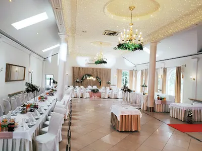 Dom Przyjęć Iwona to popularny lokal na organizację imprez okolicznościowych w Rybniku, położony w spokojnej dzielnicy Radziejów przy ul. Trzech Krzyży 65. Obiekt cieszy się wysoką oceną 4.7/5 w Google na podstawie 623 opinii, co potwierdza jego renomę wśród klientów. Goście chwalą dwie jasne i przestronne sale, z których jedna pomieści ponad 100 osób, idealne na wesela, urodziny, komunie czy wigilie firmowe. Lokal wyróżnia się zaciszną lokalizacją na Śląsku, z łatwym dojazdem i własnym parkingiem. Klienci podkreślają smaczne i urozmaicone jedzenie – od roladek wieprzowych po zaskakujące opcje wegetariańskie, z dużą porcją dań i apetycznymi deserami. Obsługa jest profesjonalna i sympatyczna, z kelnerami, którzy dbają o szczegóły, jak pan Rafał czy Patryk, co wielokrotnie wspominają zadowoleni goście. Choć zdarzają się uwagi o powtarzalności menu czy pojedyncze zastrzeżenia do jakości dań, ogólny poziom pozostaje wysoki, a stoły zawsze estetycznie zastawione. Pięknie zagospodarowane otoczenie dodaje uroku – zielony ogród z oczkiem wodnym i łódką, taras, altanka i drzewa z lampkami tworzą idealne tło do zdjęć plenerowych. To miejsce, które wielokrotnie odwiedza się z przyjemnością, oferując niezapomniany klimat dla imprez w gronie rodziny i znajomych. (198 słów)